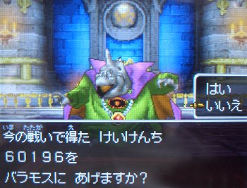 まぁ、メタキン狩りしたら、これぐらいはどうって事ないので、あげたら、バラモスがレベル3になりました。