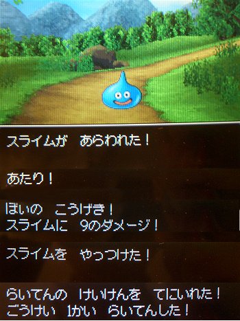 与えたダメージもでて、1回の攻撃で、スライムをやっつけることが出来ました。