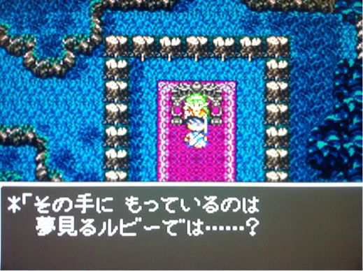 ノアニール西の洞窟で、夢見るルビーを入手し、エルフの隠れ里の女王から、交換で、目覚めの粉をもらいました。